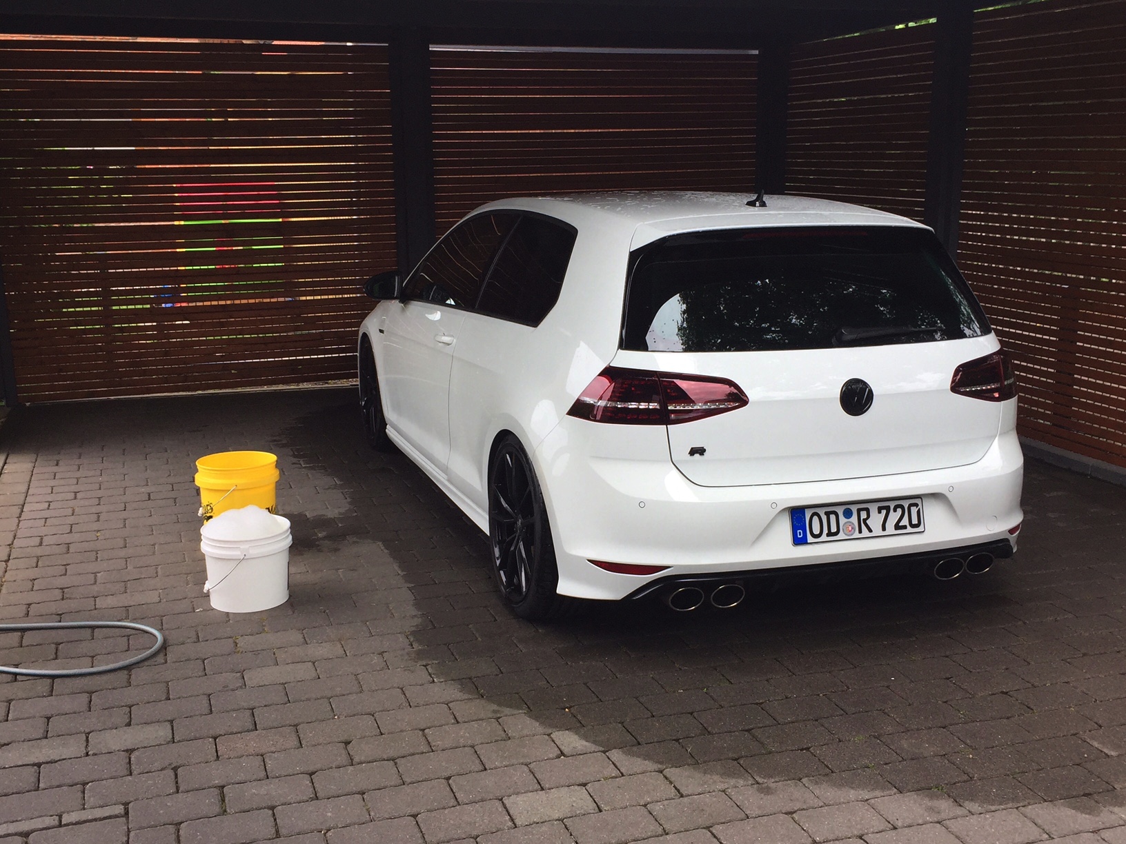 Verarbeiten lies es sich ansonsten recht gut, habe gleich nach dem Auftrag abgewischt und hatte auch keine Schlieren wie oft beschrieben. Vorher wurde gewaschen, poliert und mit Gyeon Prep vorbehandelt.Von jetzt an ist Handwäsche mit ValetPro Adv. und Mr. Pink angesagt.