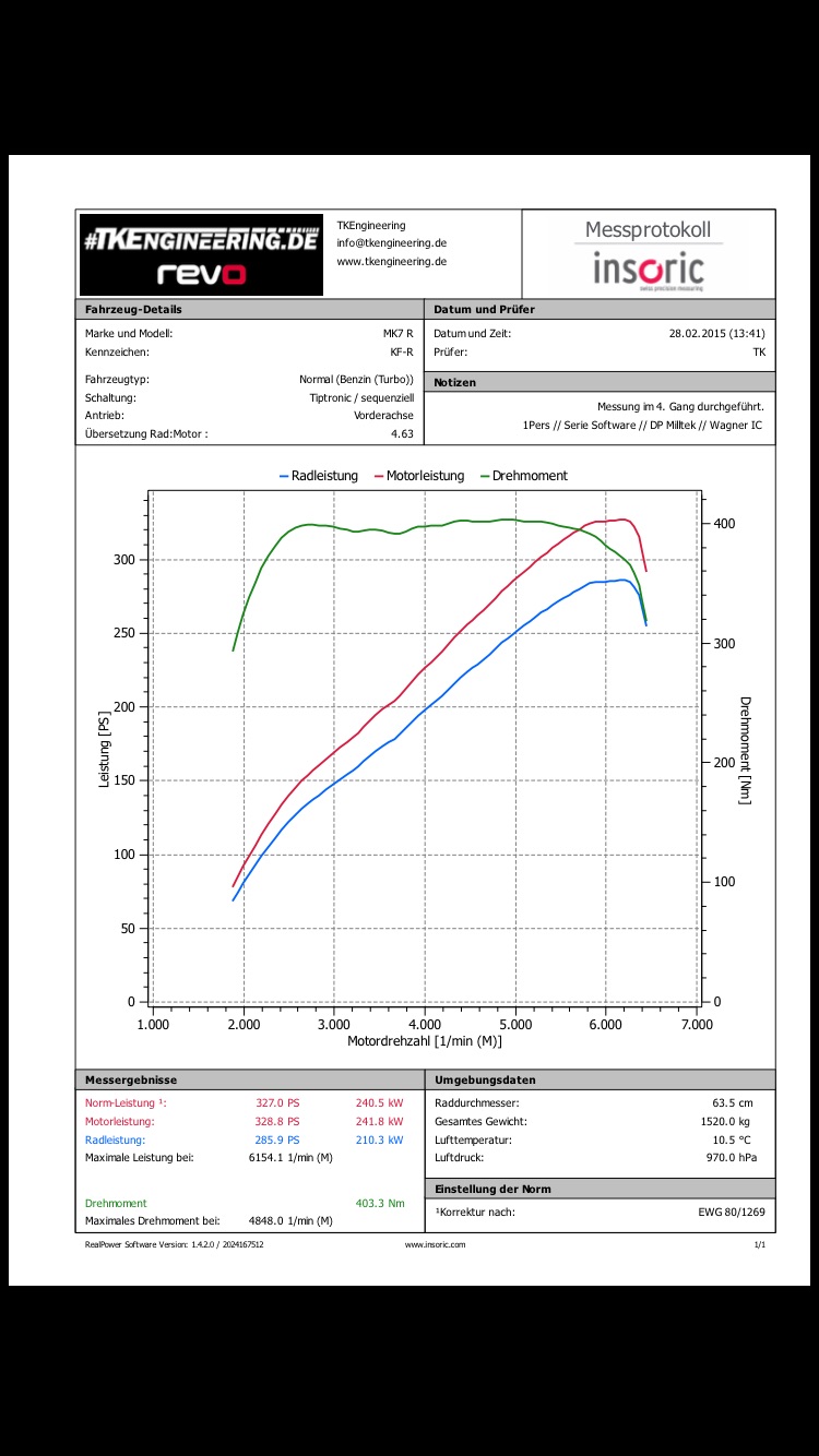 Die Übersetzung ist anders wie bei den beiden anderen und bei 4000 Umdrehungen ist das maximale Drehmoment (normal bei 2500-5000). Das deutet alles darauf hin das im falschen Gang gemessen wurde bzw nicht das richtige Übersetzungsverhältnix gewählt wurde .