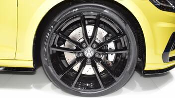 Die Lackfarbe schimpft sich Zitronen- oder Limonengelb- Metallic und ist definitiv greller / intensiver als das Gelb vom Arteon.Auffällig ist beim Messefahrzeug: