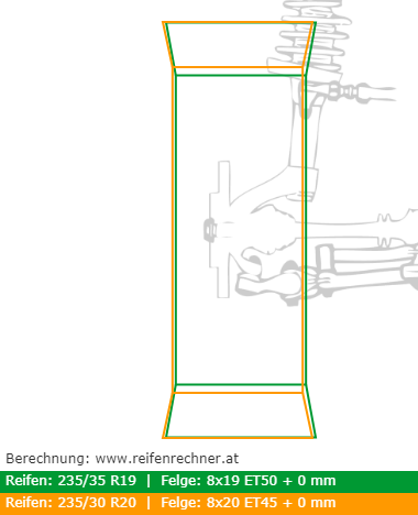 wenn ich mir das mal angucke, mit ner Pretoria als Referenz... 8x19 et50 235/35 vs 8x20 et45 235/30