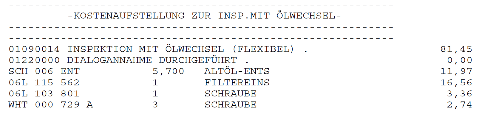 SamAbgesehen vom Ölwechswel wurde noch die Inspektion gemacht. Siehe Anhang.