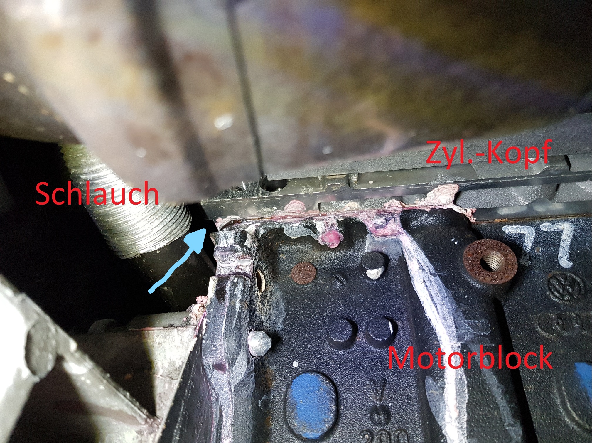 Oben ist was von einem Haarriss an einem Kühlwasserflansch die Rede, sitzt dieser wirklich rechts vom Fahrer aus gesehen oder kann es sich hier um den Schlauch handeln welchen ich mein und vom Fahrer aus gesehen links am Block sitzt (Bild 2)?habe leider kein Druckprüfer zum Abdrücken des Systems.
