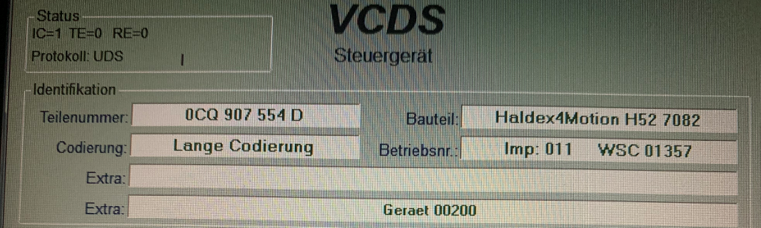 So sieht's bei mir aus (siehe Anhang) - legt es ev. am Getriebesoftwarestand oder Haldexstand?
