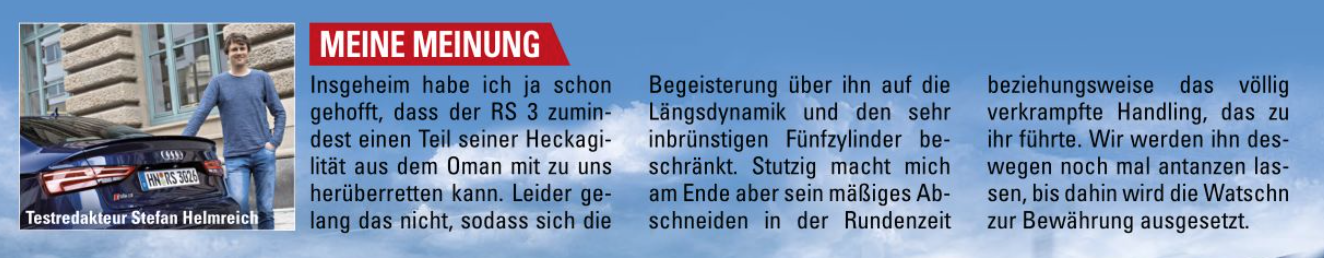 hätte ich jetzt eine eigene Firma , würde ich den RS 3 auch Bestellen, da der 5 Zylinder ab 2019 Geschichte ist!