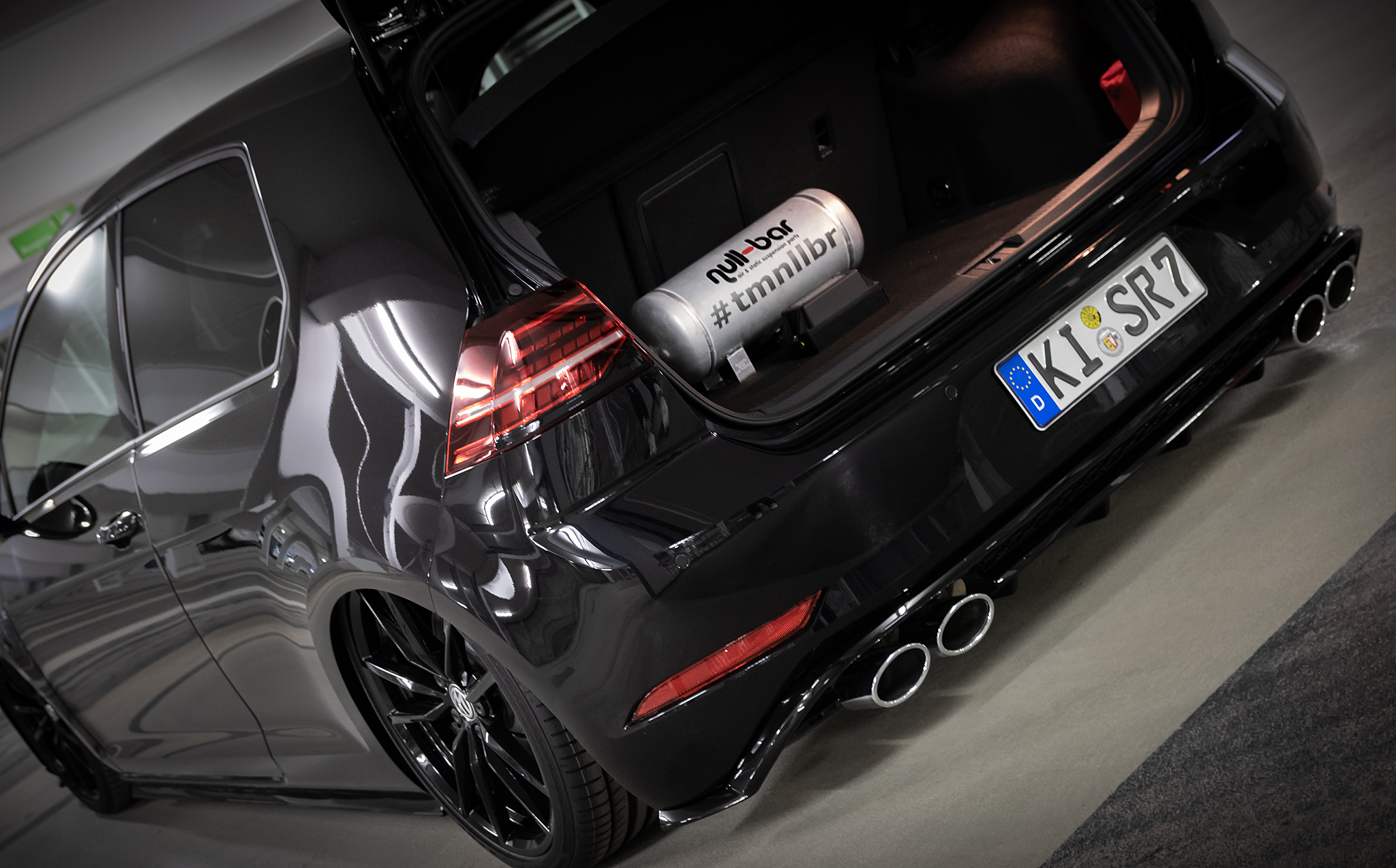 Die Stoßstange wird gecleant und das Kennzeichen mit Magneten befestigt.